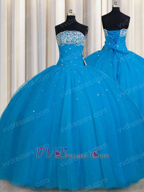 From Bust To Waist Full Polyester Boning Deep Sky Blue Quinceanera Gown With Crinoline