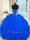 Full Silver Beading Bodice Royal Blue Quinceanera Gown Puffy Ruffles