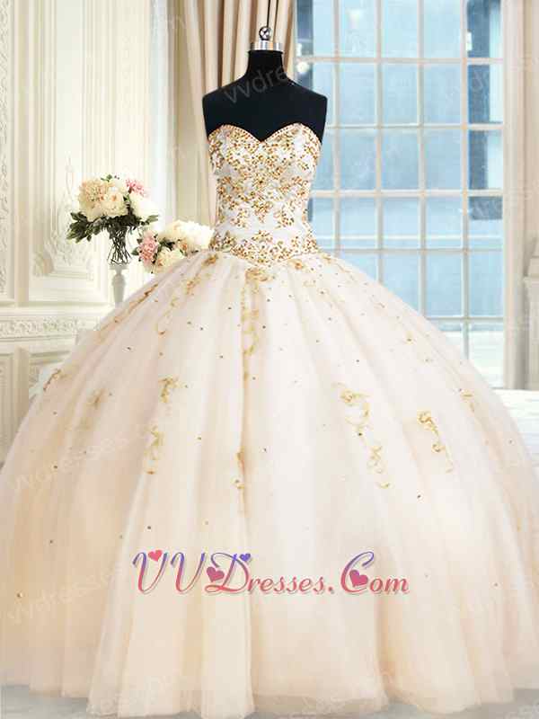 Ivory Quinceanera Military Ball Gown Gold Embroidery Designer Western Style