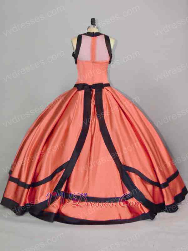 Scoop Red Thick Satin With Black Bordure/Overlapping Girls Quinceanera Birthday Gown