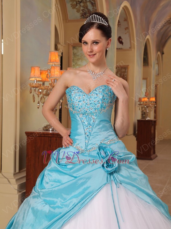 Light Sky Blue And White Sweetheart Quinceanera Dress