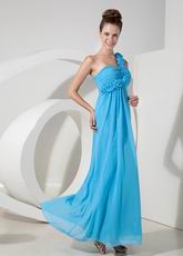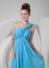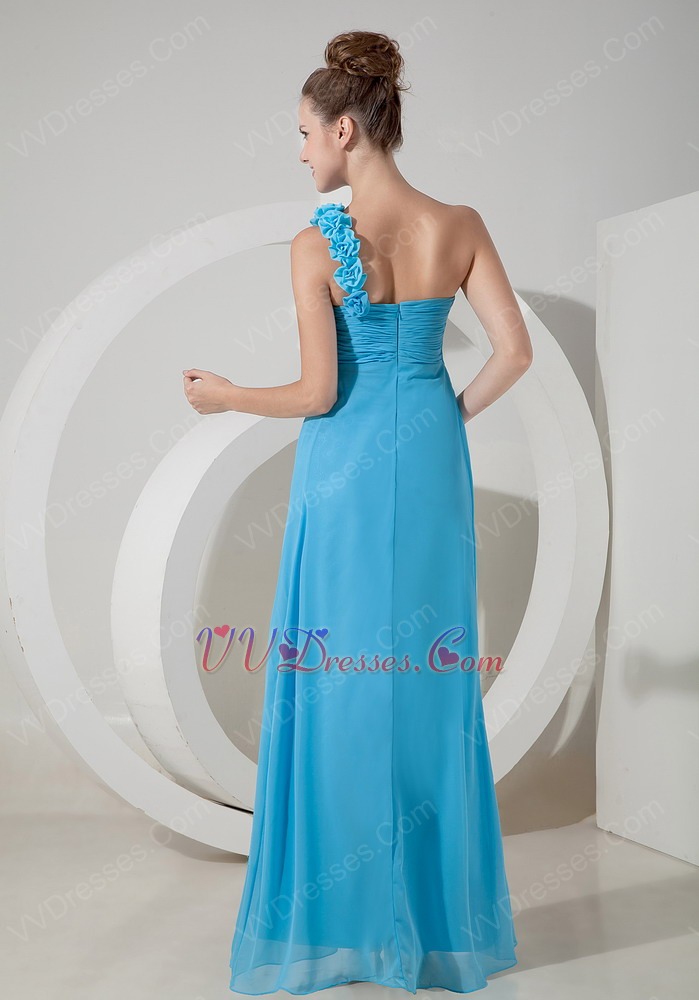 One Shoulder Rosette Strap Aqua Blue Chiffon Latest Prom Dress