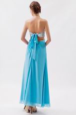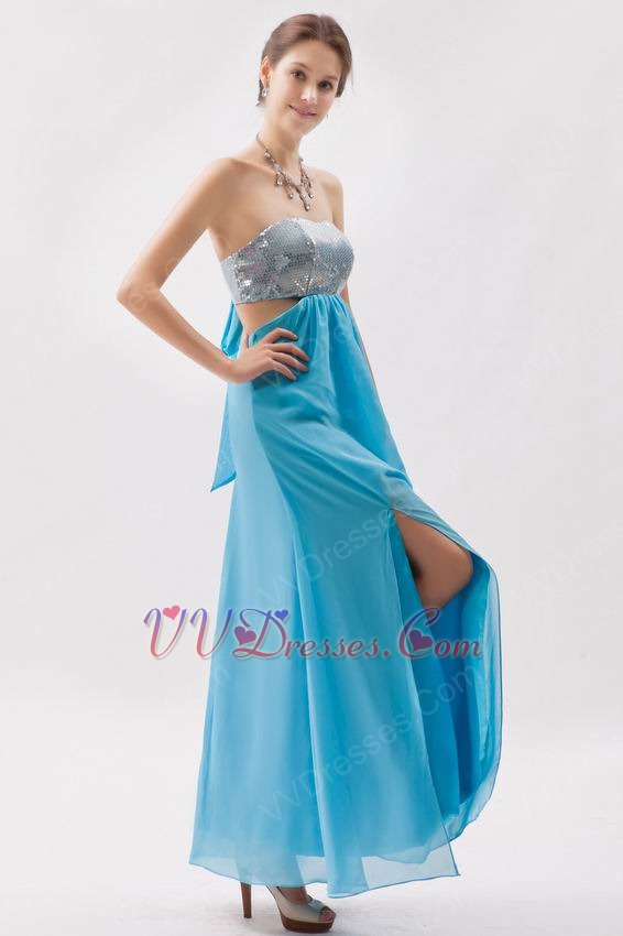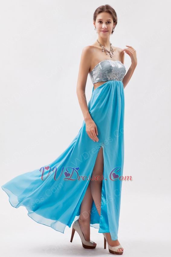 Sequin Strapless Tied Back Aqua Chiffon Prom Dress With Split