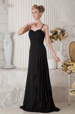 Affordable Spaghetti Straps Long Black Chiffon Evening Dress