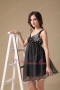 Beaded Straps Black Organza Short Prom Dress For Maternity Women