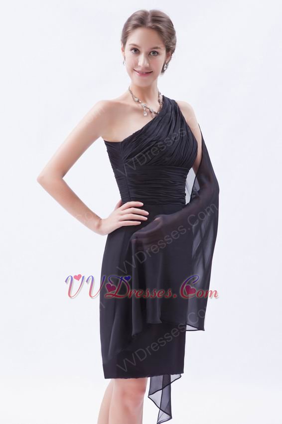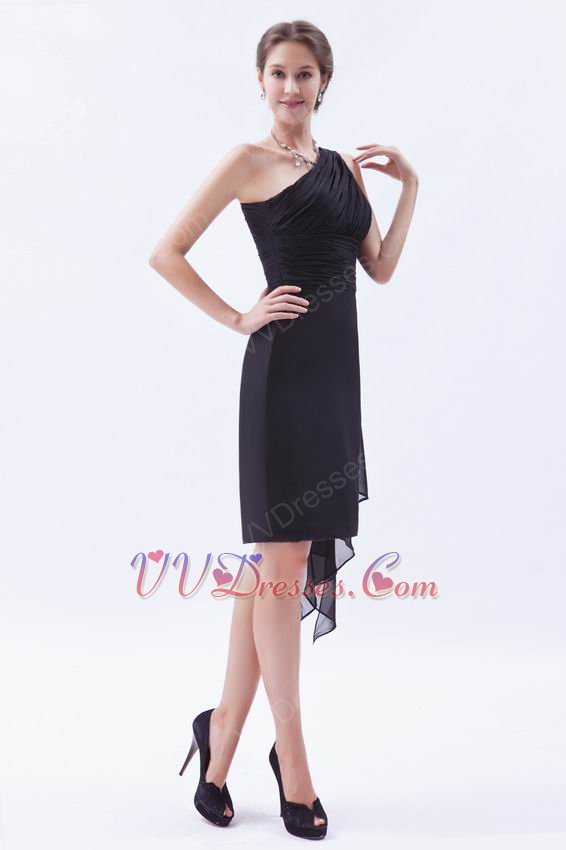 One Shoulder Drapped Short Black Prom Dress Top Designer