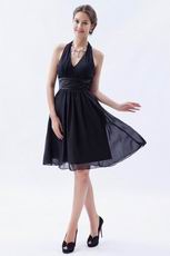 Pretty Black Halter V-neck Ruched Belt Short Prom Dress Styles