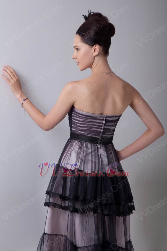 Sweetheart Tea Length Black Cascade Skirt Celebrity Prom Dress