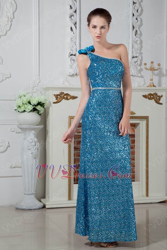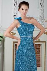 Blinking One Shoulder Bowknot Sequin Blue Cocktail Dress