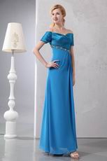 Designer Short Sleeves Azure Dress For Mother Of The Bride