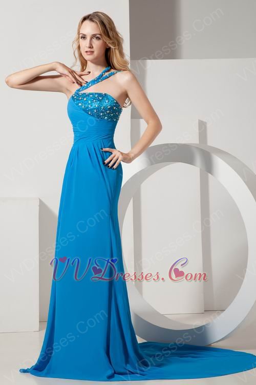 Formal One Shoulder Blue Celebrity Evening Dresses Cheap