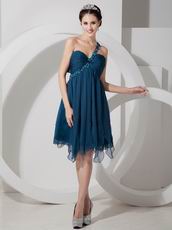 One Shoulder Cross Back Cascade Skirt Strong Blue Short Prom Dress