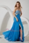 Sexy Beaded Split Skirt Blue Chiffon Evening Dress For Discount