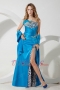 Sexy Leopard Print Inside Blue Evening Dress With Feather