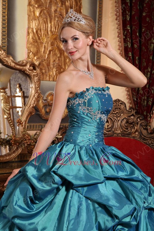 Teal Blue Cascade Layers Puffy Skirt Evening Ball Dresses