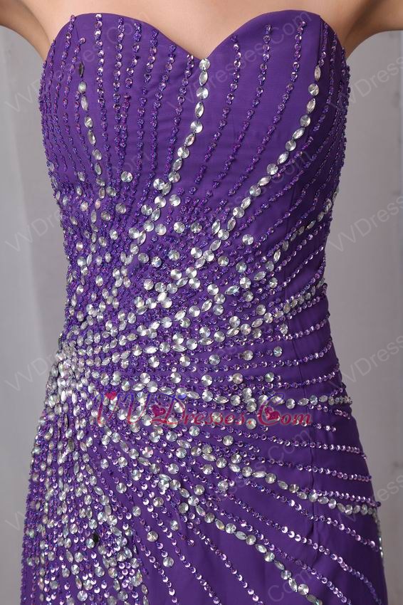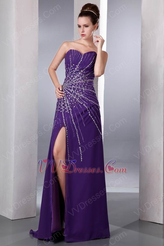 Sexy Beading Emberllish Eggplant Long Split Skirt Prom Dress