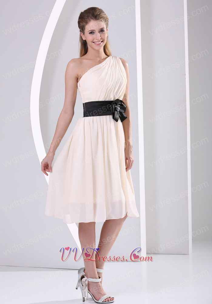 Elegant One Shoulder Champagne Chiffon Bridesmaid Dress For Wedding