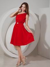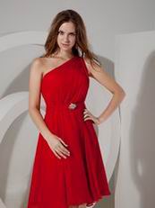 One Shoulder Wine Red Chiffon Bridesmaid Dress 2014