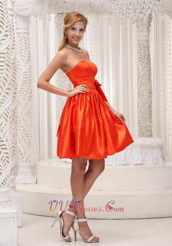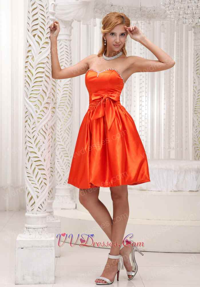 Orange Red Satin Acetate Sweet Girl Homecoming Dress With Bowknot