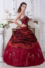 Burgundy Taffeta Prom Ball Gown With Embroidery Emberllishments