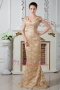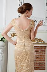 Sexy Cap Sleeves Champagne Lace Evening Dress 2012 Discount