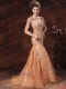 Beige Embroidery Square Formal Evening Gown For The Stage Show