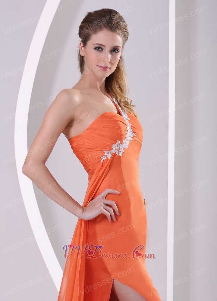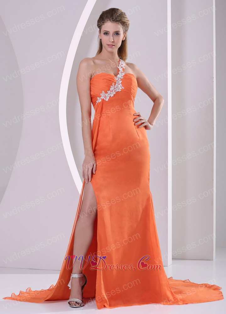 Orange One Shoulder Side High Slit Court Train Prom Pageant Dress DHL