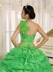 Grass Green Fully Bubble Quinceanera Dress Handmade Flowers Single Strap