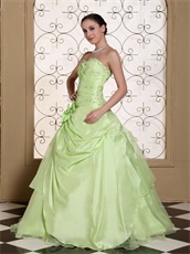Light Yellow Green Taffeta Slit Gowns For Quinceanera Girls