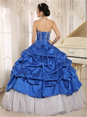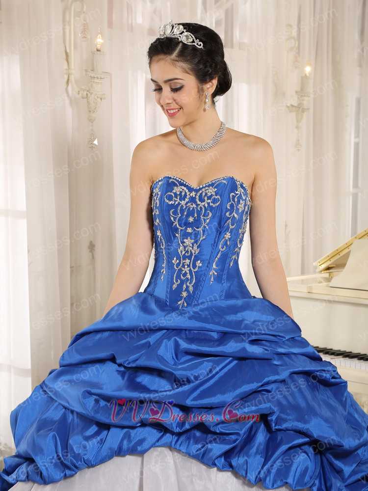 Royal Blue Taffeta Pick-ups Clearance Quinceanera Dress Silver Embroidery