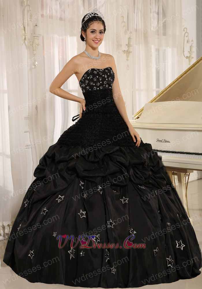Strapless Black Military Court Gown With Silver Stars Embroidery