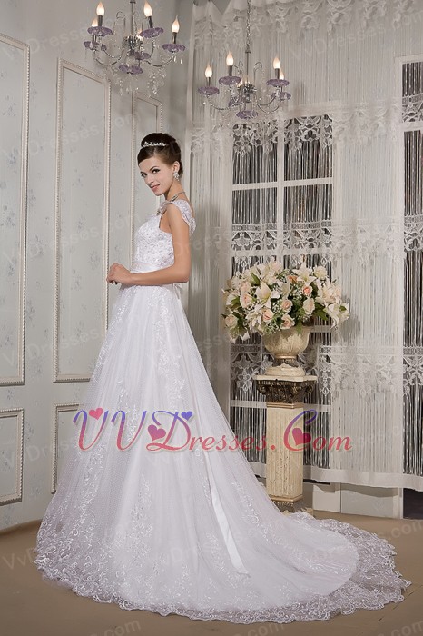 Brand New Square Neck Wide Straps Lace Embroidery Wedding Dress Low Price