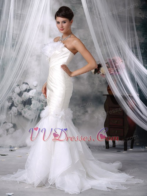 Ivory Trumpet Strapless Wedding Dress Handcrafted Flowers Low Price