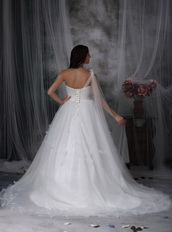 One Shoulder Watteau Train Maternity Wedding Dress By Net Low Price