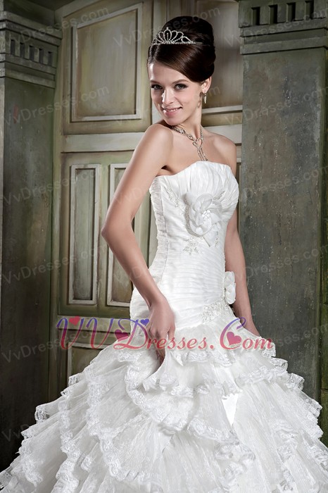Strapless Hand Made Ruffles Cascade Wedding Dress Exquisite Low Price