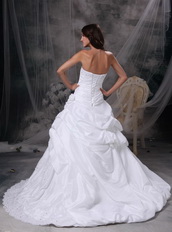 White Taffeta Custom Make Puffy Wedding Dress Western Low Price
