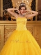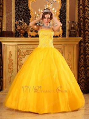 Bright Gold Yellow Quinceanera Dress With Spaghetti Straps