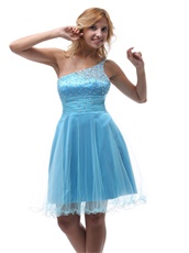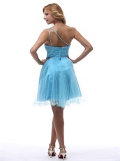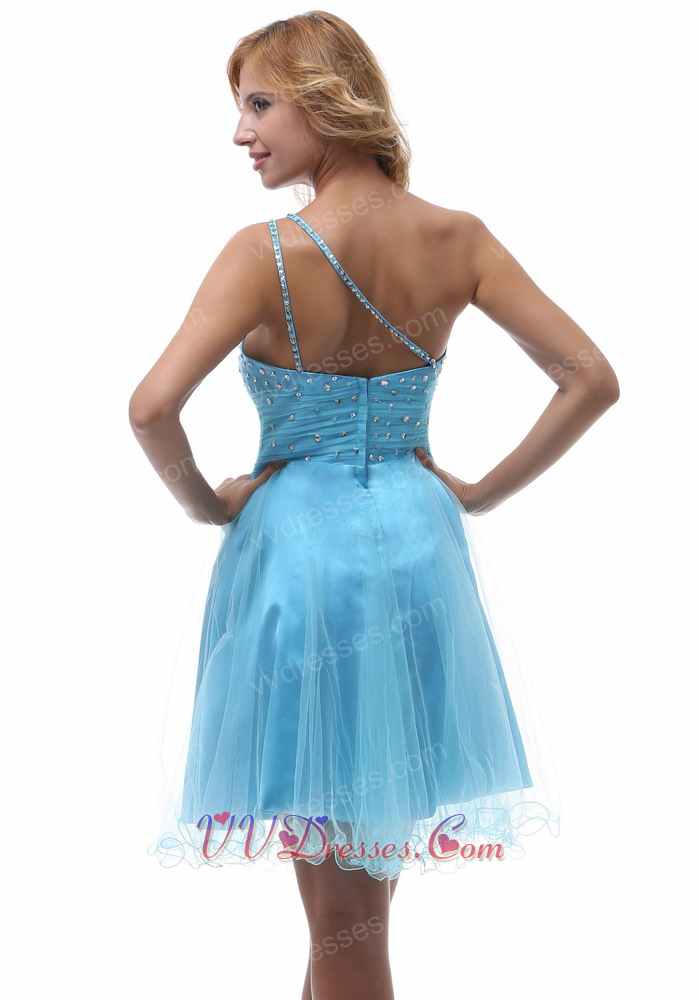Cheap Single Left Strap Aqua Blue Short Tulle Prom Dresses Shop