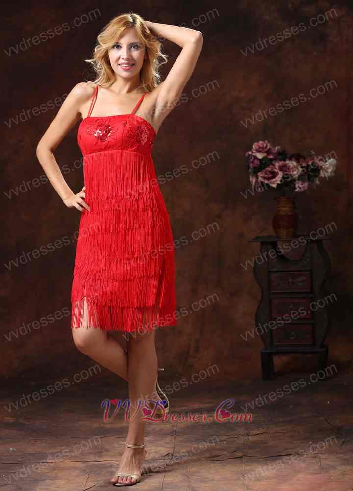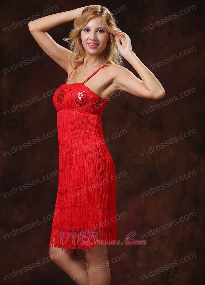 Spaghetti Straps Layers Red Tassels Latin Dance Dress Charming
