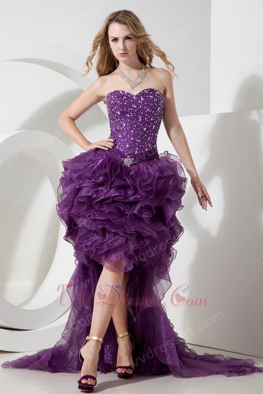 Sweetheart Beaded High Low Grape Cocktail Prom Dress