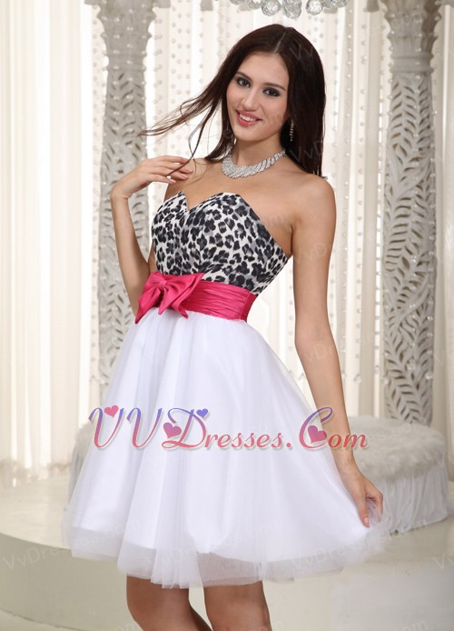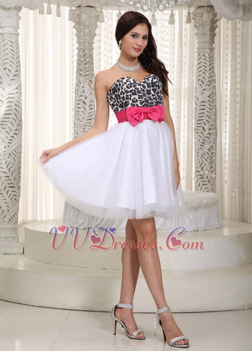 White A-line Leopard Prom Dress Short Skirt With Bowknot Unique