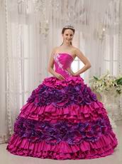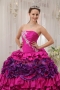 2014 Strapless Fuchsia Quince Dress Skirt With Rolled Flowers