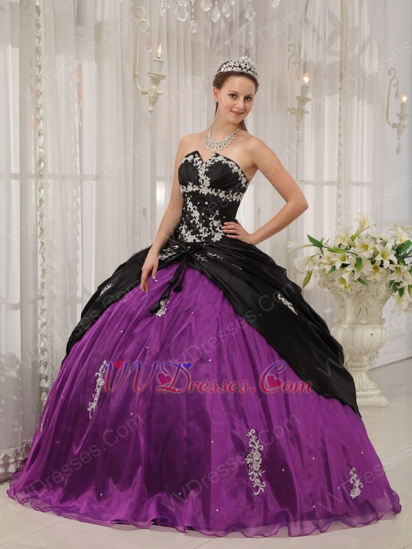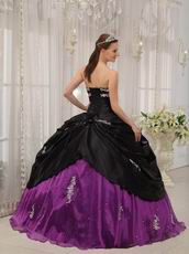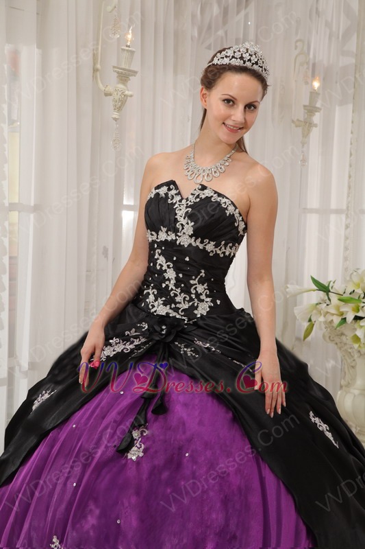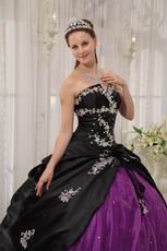 Appliqued Strapless Black and Purple Quince Dress For Young Girl
