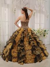 Leopard Quinceanera Dress With Black And Yellow Ruffle Skirt