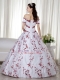 Short Sleeves White Quinceanera Dress With Wine Red Leaves