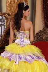Sweetheart Bright Yellow And Printed Layers Quinceanera Dress