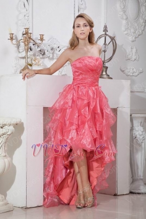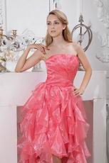 Inexpensive Cascade Skirt Pink Organza Cocktail Party Dress