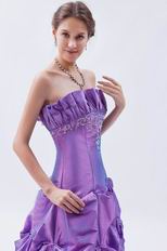 Cheap Strapless Blue Violet Taffeta Prom Dress With Embroidery