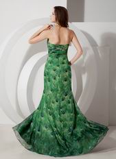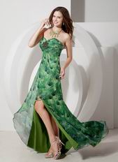 Side Split Skirt Peafowl Printed Unique Latest Prom Dress