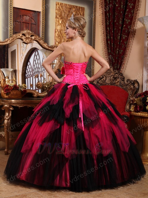 Black and Deep Pink Cascade Girl Quinceanera Dress For Cheap
